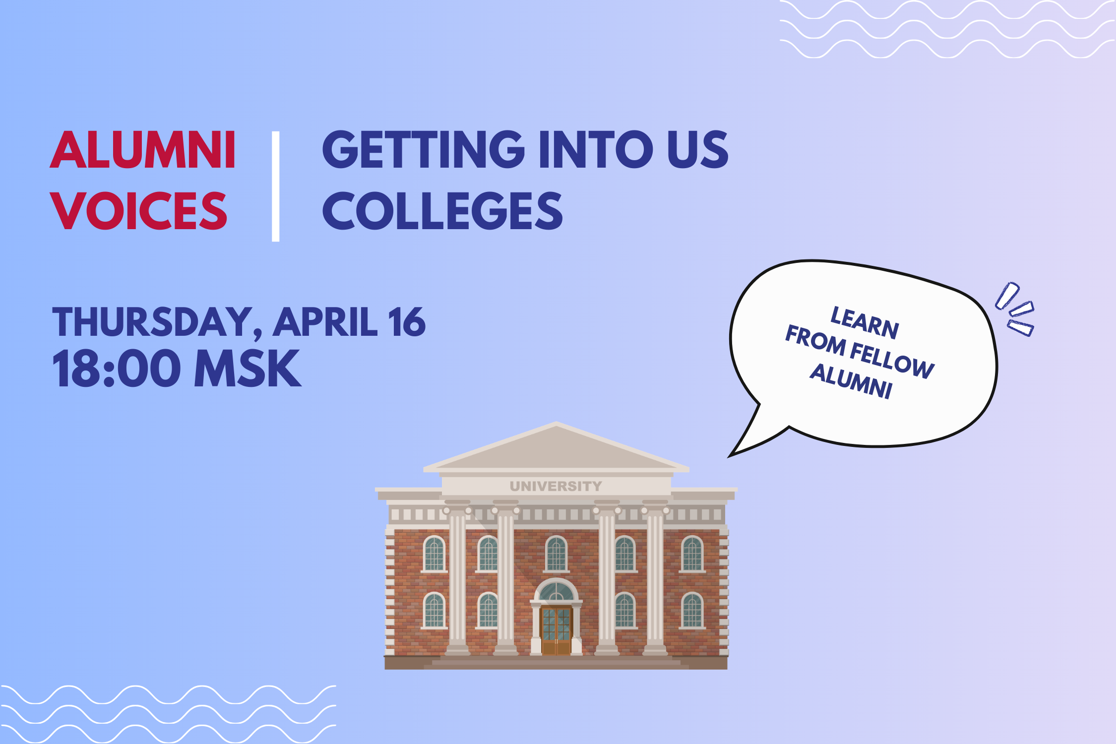 Join our second Alumni Voices session with Pavel, an expert on international education, and Camila, a PhD student at Durham University. Both are exchange alumni and will share personal experiences on applying to American universities.